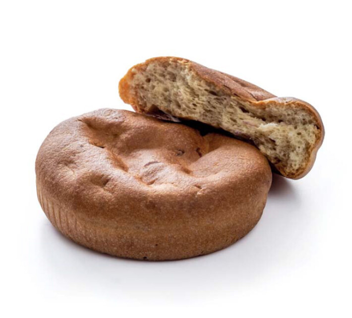 Prodotto da forno tipo focaccia con cavolo viola fermentato (9,6%). Ad elevato contenuto di proteine e di fibre.